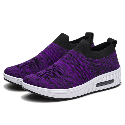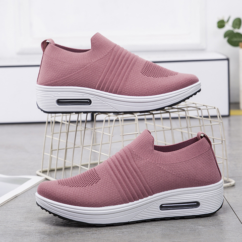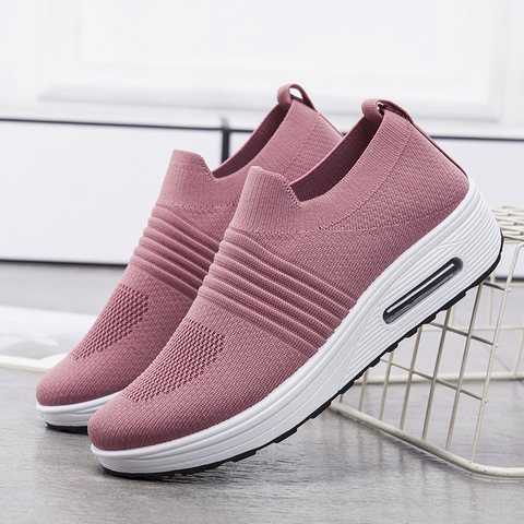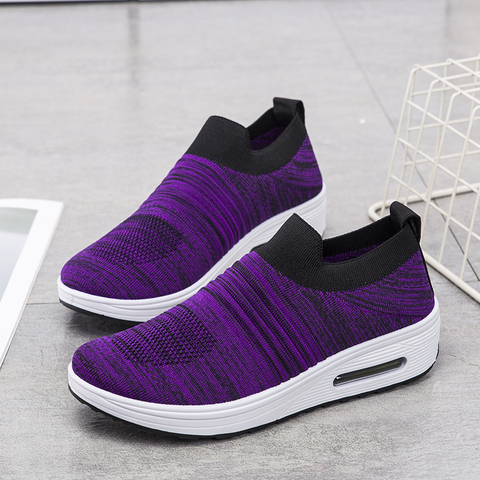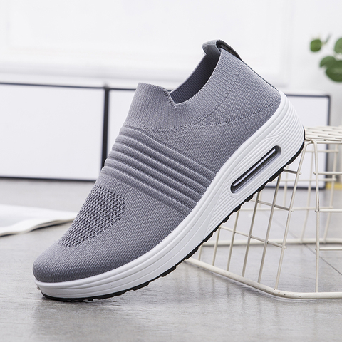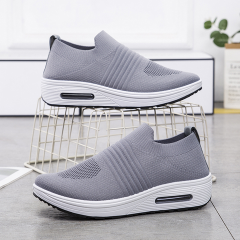 Женские стильные кроссовки, Нескользящие дышащие, вязаные, на плоской толстой подошве